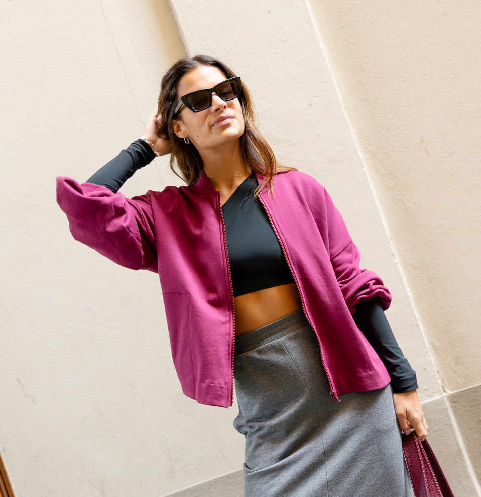 Ogni capo è progettato da la.Vale, che segue personalmente ogni fase di sviluppo: dalla modellistica ai dettagli sartoriali. Non è solo activewear, è design tecnico con identità e artigianalità Made in Italy.